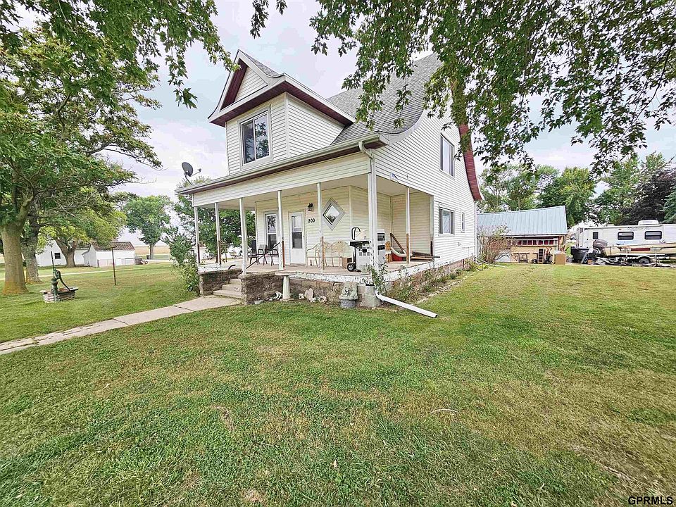 Large corner lot with two story home, wrap around porch and small enclosed shop space. Part of yard has enclosed 6 foot wooden fence. Inside has an open concept main floor. Kitchen counter space and cupboards are ready for holiday baking. Upstairs has three bedrooms. Basement has ample storage and utility space Easy access to hwy 14 or hwy 6. Come take a look! Call your local REALTOR TODAY!