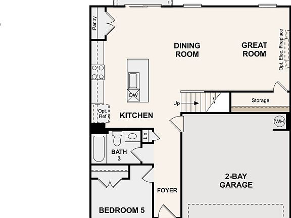This Woodruff home at Barton Hills in Spring Hill, TN is designed for everyday comfort and easy entertaining. The main floor centers around an open, airy layout where the expanded kitchen—with light gray cabinets, a center island, and generous counter space—flows effortlessly into the dining area and the great room. An electric fireplace adds warmth and atmosphere, creating a cozy spot for movie nights or relaxed gatherings. Instead of a study, this home includes a full 4th bedroom on the main level, ideal for guests, multigenerational living, or a dedicated playroom.