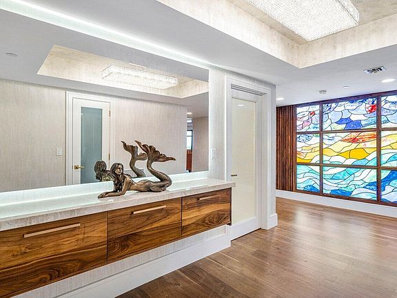 Discover sophisticated, luxury living at 200 East in the vibrant heart of downtown Boca Raton. This exquisite 2 BD, 2.2 BA condominium is ideally located just steps from the famed Boca Raton Resort & Hotel, Boca Beach Club, Mizner Park, and the pristine beaches of Boca Raton, blending the ultimate lifestyle with a premier address. Inside, the living space boasts nearly 2,200 Sqft and showcases high-end finishes and meticulous attention to detail. Walnut wood flooring extends throughout, setting a warm and rich tone that complements the sleek, contemporary aesthetic. The open-concept living space is centered around a Barrisol stretch ceiling w/ dynamic accent lighting, adding a modern flair and illuminating the refined interiors. The chef's kitchen is a masterpiece, featuring several, gleaming waterfall quartzite countertops, top-of-the-line stainless steel Wolf, Sub-Zero, & Awoco appliances, and a separate wine bar accompanied by two freestanding 30" Sub-Zero wine coolers that add both luxury and functionality to this trophy property.