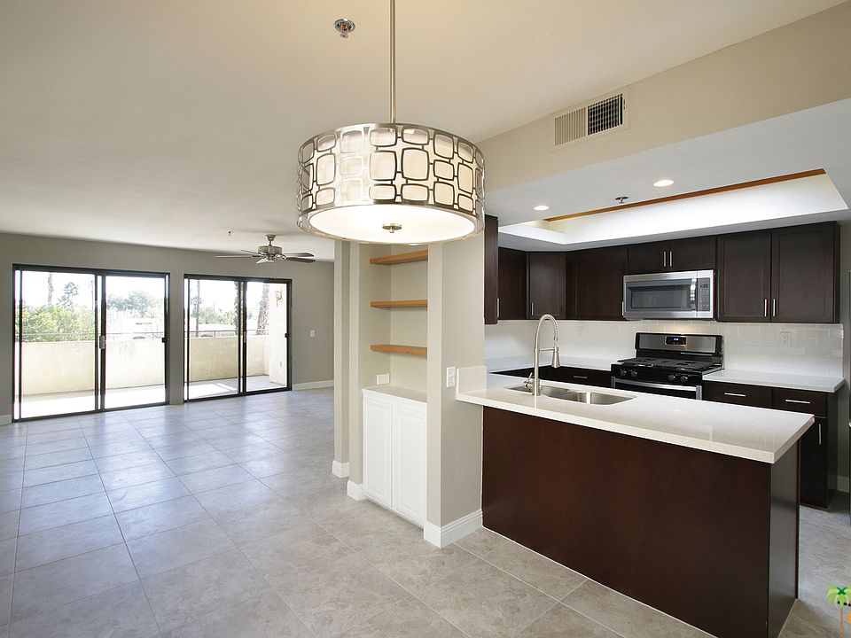 This is the place for easy living in Palm Springs! A two bedroom, 1 1/4 bath condominium on land that you own is located close to restaurants, clubs, shopping, schools and only minutes to Downtown Palm Springs. This unit has been recently remodeled with upgraded kitchen and bath with stone counters, cabinets, and s/s appliances. There is a balcony off the large living room to take in the great views, and there is direct access through double doors to the 2nd bedroom which has lots of built-in storage. The Master Bedroom also has a balcony, a huge walk-in closet and a dressing/vanity area with its own sink. There is a newer water heater and the complete HVAC system was replaced in 2017. The unit comes with a garage and plenty of extra guest parking. Community amenities include pools, spa, and tennis courts. Low HOA fees and taxes complete the picture. If you want a move in ready 2 bedroom unit in Palm Springs proper, this is the one!