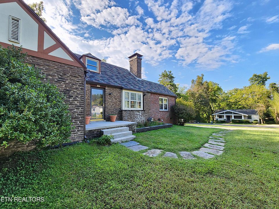 Welcome Home to this true Craftsman in SoKno. **Showings start Wednesday 9/17** This is one of South Knoxville's neighborhoods along the Dogwood Trail that also has a LEVEL yard. This home includes both Red Bud and Dogwood Trees on a large .57 acre lot - THAT'S LEVEL. The home boasts 3 spacious bedrooms on the main with a 4th bedroom upstairs (or use it as a BONUS room) with a ½ bath. But wait, the UPSTAIRS bedroom/bonus opens out onto the ROOFTOP PATIO with NEW patio/deck roof July 2025. The ROOFTOP PATIO is accessible from upstairs as well as the outside stairwell off the covered porch. This home also features a ''secret garden'' viewable from the main level master bedroom and accessible from the back yard. This property is nestled within an established neighborhood along the Dogwood Trail and just a short drive to the heart of Knoxville's Urban Wilderness: IJAMS, Fort Dickerson, and Baker Creek Preserve. Classic 1940's CRAFTSMAN style building with ORIGINAL hardwoods, ORIGINAL wood trim on main, gorgeous front door with stained glass window, bench seating built in along the front living room window, ORIGINAL door handles, warm cozy colors in the den/living and a bright and open kitchen/dining area. There are 2 living rooms - 1 off the kitchen/dining and the 2nd facing the front yard. Home also boasts an office area with built-in's between the laundry, hallway, and front living room; walk-in pantry, subway tile bathroom in hallway, and wood windows on most of the main level. The outdoor living space is something to see and includes a concrete patio, secret garden w/ birdbath, 2 raised flower beds, large side yard facing Lake Shore Drive with several trees creating privacy, plus 2 storage buildings. Designed to impress, this home is a classic Craftsman. Whether you're hosting family & friend gatherings or preparing a quiet dinner, this kitchen provides the perfect space to do so with its large island, and ample eat-in dining area. The large yard and home layout makes it ideal for families and/or rented space with shared common areas. With local authority approval and the addition of a shower upstairs, one could create a nice AirBNB or efficiency for those commuting, vacationing, or VOL watching and working in Downtown Knoxville (Buyer should verify any and all changes with local building and zoning authorities). Located just minutes from the vibrant heart of South Knoxville, you'll be close to local shops, restaurants, University of Tennessee, GSMNP, Sevierville/Pigeon Forge, and entertainment. This home is approximately 30 minutes from TYS. Take this opportunity to own a piece of Craftsman-style architecture in a thriving location.