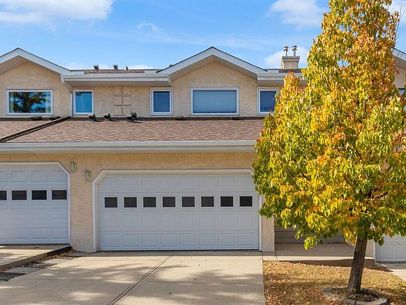 Welcome to this beautifully maintained two-bedroom condo townhome nestled on a quiet green space with a coveted double attached, insulated garage. As you approach from the front, you'll appreciate the clean curb appeal and the convenience of direct garage access into your home. Step through the front entry and into a bright, open-concept main level where upgraded carpet and underlay flow throughout, adding comfort and quality. The spacious living room is truly impressive with soaring 20-foot vaulted ceilings, a cozy gas fireplace, and large windows that flood the space with natural light. The kitchen has been thoughtfully updated with new cabinet doors and drawers, a convenient pantry for extra storage, and plenty of counter space, while the adjacent dining area overlooks the private green space beyond. The main-floor laundry and two-piece bathroom provide excellent convenience. Step outside through the patio doors onto your extended and permitted 12' x 9' back deck, complete with a gas line for your BBQ—an ideal spot for entertaining or unwinding while enjoying the serene, treed backdrop. Upstairs, the home opens to a bright loft area with white spindle railings and warm wood accents—a perfect reading nook or secondary workspace. Both generously sized bedrooms are located on this level, each with its own full en suite bathroom. The primary bedroom features beautiful vaulted ceilings and a luxurious five-piece en suite with double vanity, separate shower, and soaking tub. The second bedroom offers a well-appointed four-piece en suite. Hunter Douglas blinds dress most windows throughout the home, and nearly all windows have been replaced for improved efficiency (except the rear upstairs). Central air conditioning keeps you comfortable year-round. Below, the unfinished basement offers a blank canvas ready for your vision—rec room, bedroom, bathroom, and plenty of room for storage. The well-maintained features new asphalt shingles, and the double attached, insulated garage includes a hose bib for added utility. As an extra, a water softener adds to the home's functionality. This turnkey, move-in ready home with its prime green-space location and thoughtful updates truly needs to be seen to be fully appreciated. Be sure to check out the virtual tour!