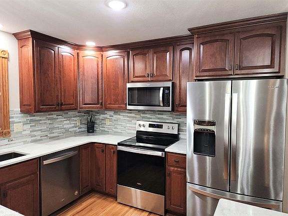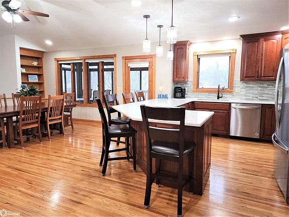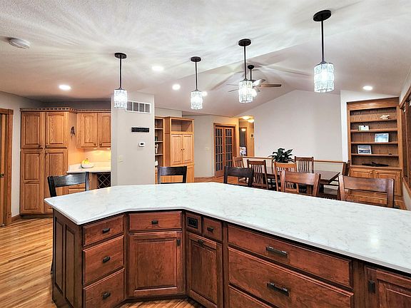 Nestled among the trees, with over 3,228 sq ft of living, and situated on 2.9 acres m/l, you will find this 5/6-bedroom, 3-bathroom, ranch with a walk-out basement, & a 2 car garage. The main floor features 2 bedrooms, including the master w/ensuite & walk in cedar closet. Kitchen and dining have been updated with new cabinets, fixtures, quartz countertop, and stainless-steel appliances. The open plan is perfect for entertaining friends and family. The living room is off the kitchen has a big bay window and fireplace. The den has beautiful built-in shelving & French doors. Laundry is conveniently located on the main level, and you are sure to enjoy the four seasons porch overlooking the pond. The basement holds a second family room with a wood burning stove, 3 bedrooms, full bath, and lots of extra storage space! You get the BEST of both worlds…country living, spectacular country views, with the convenience of living in town. This home has so much to offer! Don’t delay, call today!