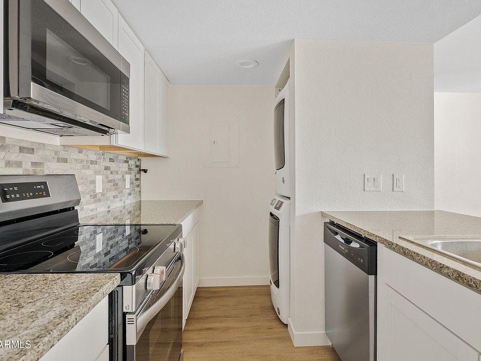 Beautifully updated 1 bed/1 bath condo just 2 miles from ASU! This first floor unit features $40,000 in upgrades including new flooring, baseboards, interior paint, remodeled kitchen and bathroom! The kitchen features new stainless steel appliances, modern cabinetry, backsplash and granite countertops. Enjoy a bright, open layout and a prime location next to the clubhouse, mailbox, community laundry room, and one of two pools in the community! Perfect for students, investors, or anyone seeking low maintenance living close to shopping, dining, bus stops, light rail, and freeway access!