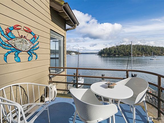 Penthouse condo with a private elevator with 180-degree views of the harbor, marina, and spectacular sunrises, two decks offer unobstructed views of wildlife and boating activities, as well as front-row seats for the 4th of July fireworks. A short walk to the ferries and a few steps more to shop in the quaint town of Friday Harbor. Both bathrooms have heated floors. Furniture negotiable. There is ample storage, including a loft area and one covered parking space. This one-of-a-kind condo has a private elevator. Chicago T&E #245469475