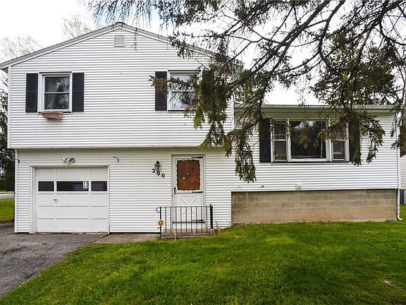 Spacious Split Level nestled on a peaceful street with West Irondequoit schools! This 3 bedroom and 1 bath home is waiting for you to make it your new home! An eat in kitchen is ready for any chef with an abundance of storage and counter space, along with a large dining space. There is no lack of living space in this home! A living room and family room will give you lots of room to sprawl out! Plus both living areas have gas fireplaces! Hardwood floors will carry you from the living room up to 3 bedrooms and an updated full bath with tile shower. Also a full basement level for extra storage and laundry. Outside an enormous backyard can be admired from the covered patio! Plus a shed and 1 car attached garage! This is one you won't want to miss out on!