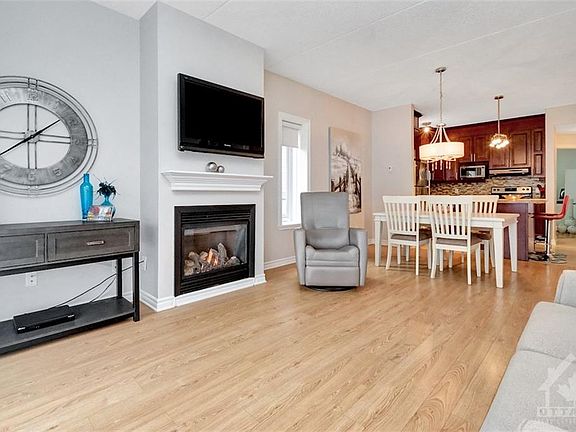 Come and see this Immaculate and rarely offered GROUND floor END unit located in FANTASTIC city of Rockland. This move in ready unit will be sure to impress. Open concept large, bright living room with gas fireplace, High ceiling + access to handy balcony. Ceramic in the foyer, kitchen, bathroom and laundry room. The living, dining room and bedrooms have beautiful neutral laminate floors. Gorgeous kitchen shows like a model home with island, cabinetry to the ceiling. Two spacious bedrooms. 5 quality appliances included plus hot water heater. Conveniently located to a short walking distance to amenities: Independent grocery store, shops, choice of restaurants, banks, parks, Ottawa river & easy access to Orleans & 20 minutes to downtown Ottawa. Built in 2011 & very well kept. This is PERFECT for first time home buyers, retires or investors!! Offers will be presented at 6pm on Wednesday May 4th.