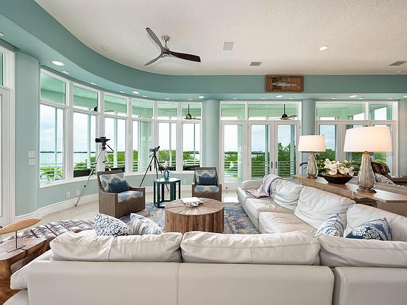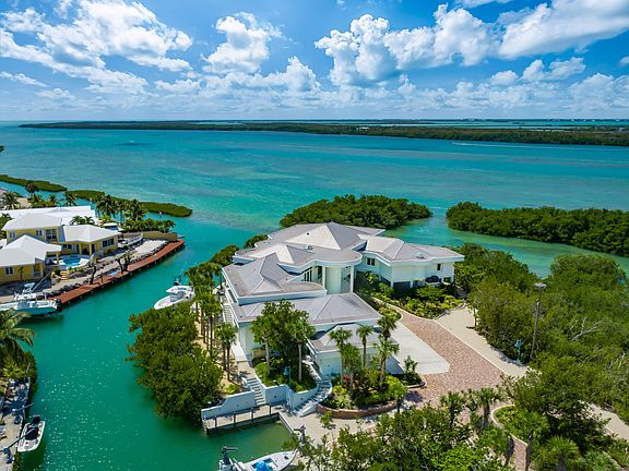 Exemplary Cudjoe Gardens Estate boasting a sizable 41,530 sq ft lot, surrounded by lush native landscape with resort-style amenities, and incomparable boating! Fully outfitted for the ultimate Keys lifestyle, this colossal masterpiece features a boat lift, private boat slip, davits, and nearly 150 ft of concrete dock space. This sprawling showpiece is nestled at the end of a substantial brick paver driveway and takes full advantage of its coastal location. The focal point of the open-concept main living space is a wall of large picture windows, flooding the space with natural light and stunning Open Water Views. The space lends itself to entertaining with an oversized dining room, and well-appointed Chefs kitchen, complete with granite countertops, stainless steel appliances, ample storage, large kitchen island, and wet bar with counter seating. An additional bonus room, utilized as a game room, is fully customizable to your needs with balcony access and kitchenette. The primary bedroom is highlighted by a private balcony and an immense walk-in closet, as well as a lavish en suite bathroom. A private guest wing at the opposite end of the house offers space for guests to call their own, while enjoying elevated amenities. Downstairs you will find endless entertainment space as well as storage in a towering garage. Lounge by the pool or stroll the tranquil grounds enjoying the balmy sea breezes. The full gamut of keys tropical living at its precipice, yet within close proximity to delectable dining as well as all the excitement that Key West has to offer! Don't miss an opportunity to see this Cudjoe Gardens showstopper today!