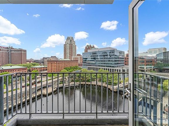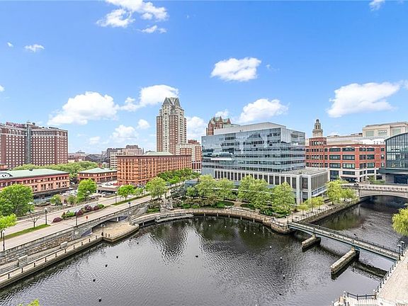 Perched on the 7th floor of the coveted Waterplace Residences, this sophisticated 2-bed, 2-bath unit offers dazzling river and skyline views through dramatic floor-to-ceiling windows. The sunlit open layout features rich hardwood floors and a welcoming, airy atmosphere. At the heart of the home is a stylish chef’s kitchen with warm wood cabinetry, granite countertops, stainless steel appliances, ample prep space, and a center island—perfect for casual dining or entertaining. The living area opens to a private balcony, ideal for morning coffee, a sunset wine, and taking in the magic of WaterFire! The generous primary suite includes a spa-like bath with double sinks, a soaking tub, a separate shower, and a custom walk-in closet. The second bedroom boasts city views and a roomy closet—equally suited for guests or a home office. Additional highlights include in-unit laundry, abundant storage, and garage parking. Residents enjoy 24-hour concierge service, a well-appointed fitness center, an elegant community room, and fabulous rooftop terrace with panoramic views of Providence. Waterplace is just steps to the train station, Brown University, Rhode Island School of Design, The RISD Museum, Johnson & Wales University, as well as Providence’s acclaimed restaurants, shops, and thriving cultural scene. Experience city living at its finest.