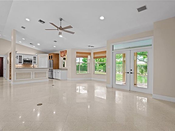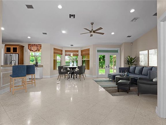 Welcome to 200 Fairway Cir, a serene haven nestled in the heart of North Naples, FL. This meticulously maintained 3-bedroom, 2-bathroom home offers a perfect blend of comfort and elegance. As you step inside, you are greeted by an inviting living space bathed in natural light, featuring vaulted ceilings and tasteful finishes throughout. The spacious kitchen is a chef’s delight, boasting granite countertops, stainless steel appliances, ample cabinet space and large pantry. Uniquely remodeled by an award-winning designer this home offers elegant finishes. Limestone and tiger wood flooring, stone finishes throughout, updated kitchen and baths and solid wood doors with Baldwin hardware! Large circle driveway, 2 car garage, vaulted ceilings in the main living area opening to a large screened lanai. Additional features include hurricane shutters, window treatments and handmade terra cotta tile on the lanai. The master bedroom is a peaceful sanctuary, complemented by a beautifully updated ensuite bathroom. Guest bedroom and Den/Bedroom provides flexibility for guests or a home office, each offering generous closet space and serene garden views. The Den is easily changed back to a bedroom by adding closet doors as shown in the photos. Step outside to your large private screened lanai ideal for morning coffee or evening gatherings with friends and family. The lush landscaping enhances the ambiance of this peaceful retreat, creating a perfect backdrop for relaxation and outdoor enjoyment. Located in a the much sought after Palm River Estates neighborhood, surrounded by LaPlaya Golf Course, residents enjoy access to top-rated schools, fine dining, shopping, and world-class beaches just minutes away. Whether you seek a year-round residence or a seasonal retreat, this home offers the perfect blend of location, comfort, and tranquility. Don’t miss your opportunity to own this exceptional retreat in Naples, FL.