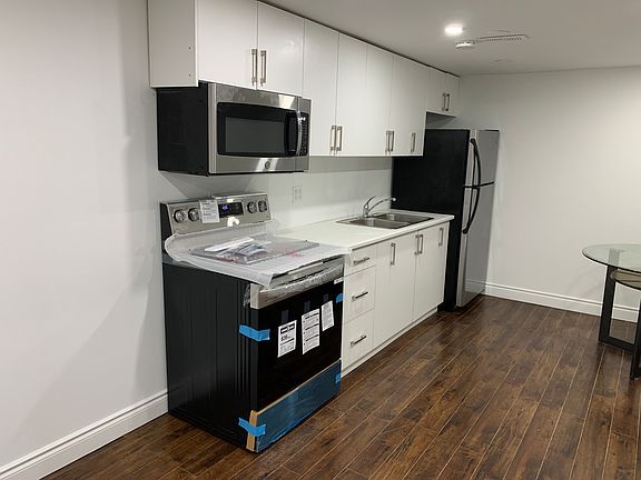 BEAUTIFUL NEWLY RENOVATED 1 BEDROOM APARTMENT Very bright open concept kitchen Open concept living/dining area Lots of natural light with above ground windows throughout apt Fridge, Stove, Washer, Dryer Large fenced backyard Pot lights throughout Newly installed laminate flooring throughout apt 1 car parking Close to all amenities and transportation Easy access to the 400 highway $1595 plus utilities This apartment is a must see! Owner pays for water, renter pays for gas and electricity on pro rata basis 30% of the total utilities. Only small pets are allowed.
