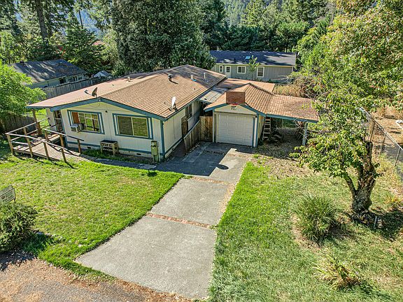 Charming 2-bedroom, 2-bath manufactured home located in the desirable Bigfoot Subdivision. Set on a usable 1/4 acre lot with fruit trees, a small deck, carport, and garage. The home features a new roof installed in 2021 and a vaulted ceiling in the great room that flows into the kitchen with a breakfast bar. Tile floors and countertops in the kitchen and bathrooms add a touch of elegance. Enjoy the convenience of an on-demand tankless water heater. There's an addition on the south side of the home, ready for your creative vision. Outbuildings provide ample storage, and you're just minutes from downtown Willow Creek and the Trinity River. Take a look at the 3D tour!