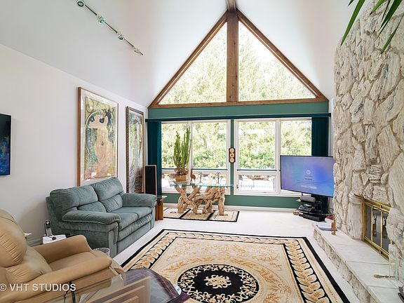 Almost 3,000 sf of open concept, with wonderful views of the outdoors. Sunken Living Room with vaulted windows and ceiling and a large 2-sided fireplace shared with the Family room. The Family room is open to kitchen and eating area, as well as formal Dining Room and Foyer area. A screened porch overlooks the fenced rear filled with a lounging area off the decking of an inground heated pool and a separate deck at opposite end off the Master Bedroom. Three bedrooms and three baths, along with laundry room completed the first floor. A full unfinished basement of almost 3,000 square feet awaits your ideas and a 3 car garage complete this home on 1.16 acres in Rolling Knolls. Scenic view of forest preserve from the front porch area. Inground sprinkler system; circular drive; and more.