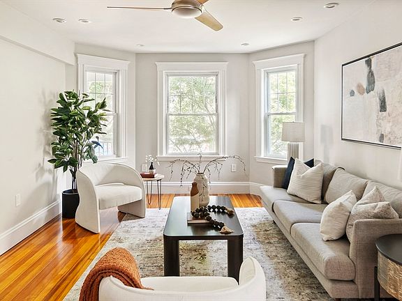 Nestled in the vibrant heart of Coolidge Corner, this sun-soaked four-bedroom, three-full-bath condo offers a perfect blend of modern living and convenience. The main level features a welcoming living room, large dining area, updated kitchen with stainless appliances and quartz counters, three large bedrooms, and two full bathrooms. The lower level boasts a beautifully finished family room that can also serve as a spacious fourth bedroom, complete with an additional full bath and a separate storage room. Other highlights include a dedicated parking space nearby, central heating and cooling, in-unit washer/dryer, a private porch, and a shared yard. Convenient to public transportation, you'll find three T stations and bus stops within half a mile. Minutes to your favorite restaurants, theater and shops offered in Brookline.