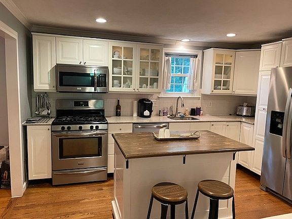 - Features: Flooring - Hardwood, Countertops - Stone/Granite/Solid, Kitchen Island, Recessed Lighting, Remodeled, Stainless Steel Appliances, Crown Molding