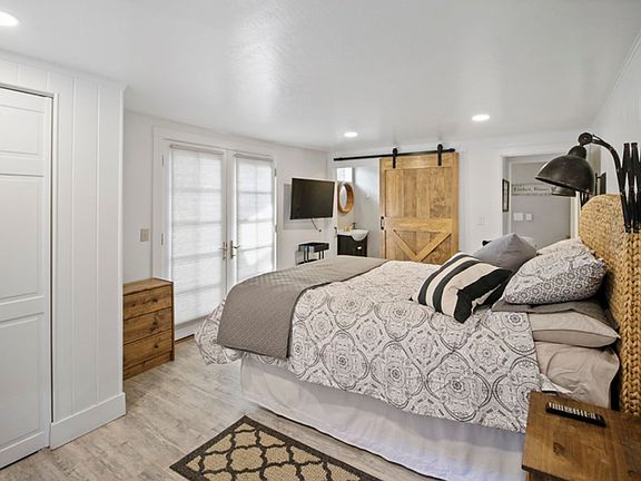 Huge yardCovered outdoor living spaceModern farm house decorWalk-in closetFrench doorsGlass covered patioQuiet neighborhood