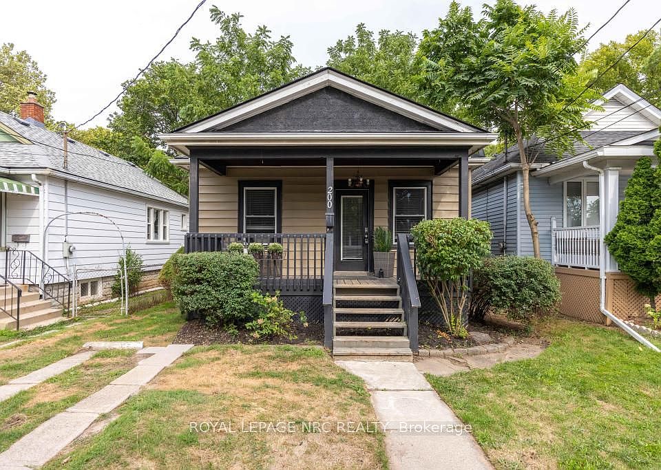 Welcome to 200 Geneva Street in St. Catharines, a home where it's easy to imagine starting the day here with a coffee in hand on the front porch while watching the neighbourhood come to life. Step inside to a bright living room with large windows that fill the space with natural light. White trim, thoughtful lighting, and warm wood floors add to the inviting feel and give the home its charm while still reflecting a fresh update. From here, move into the dining room, which offers its own space while still connecting to the living area, creating a natural flow that works for everyday life and gatherings alike. Beyond, the bright kitchen provides plenty of storage and opens directly onto the back deck, making it simple to move outdoors when the weather is right. Two comfortable bedrooms with big windows and a 3-piece bathroom with a shower complete the main floor. Outside, the backyard is ready to enjoy with green space, a fenced area, and a deck. The home sits in a convenient neighbourhood close to downtown restaurants, coffee shops, and shopping, with easy access to everything from Fairview Mall and grocery stores to local boutiques. Whether you're a first-time buyer, an investor, or looking to downsize without giving up a yard, this move-in ready bungalow is primed for its next story to be written. Notes: Front yard parking spot measures approximately 15ft x 8ft; Freshly painted (2025), AC (2020)