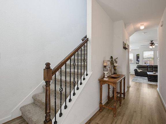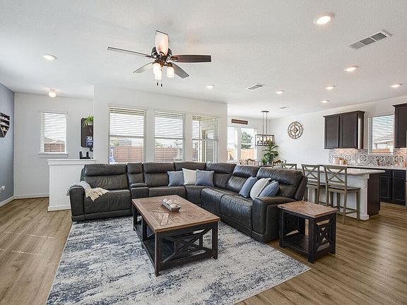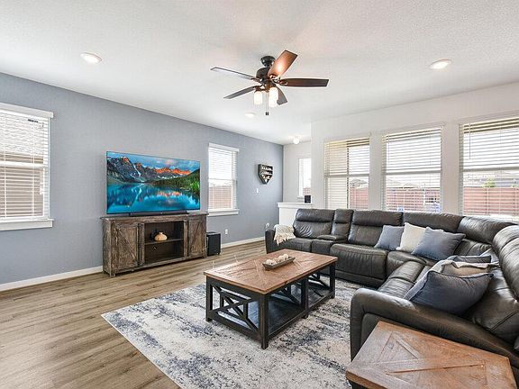 Great backyard attached to adorable home in a cul-de-sac! Step into The Legend built by Gray Point, into a beautifully designed two-story home that perfectly balances open-concept living, comfort, and flexibility for today’s modern family. A welcoming front porch opens into an inviting foyer with access to a convenient powder bath and storage space. The open great room, dining area, and casual dining nook flow seamlessly together, centered around a spacious kitchen with a large island and walk-in pantry—ideal for entertaining or family gatherings. A cozy tech space makes the perfect home office or study corner, while the 2-car garage provides easy access and added convenience. Upstairs, the impressive primary suite offers a relaxing retreat with a luxurious bathroom and generous walk-in closet. Two additional bedrooms, each with walk-in closets, share a full bathroom. The game room serves as the perfect space for movie nights or kids’ playtime, and a convenient laundry room completes the floor. The backyard is huge and includes a pet kennel, extended patio with firepit and plenty of room to play! Kitchen offers 42" mahogany cabinets, neutral quartz counters, pantry space, and center island for meal prep and additional dining! Primary bedroom up allows for plenty of room for a sitting area, oversized soak tub, upgraded tile features and double vanities. Features include upgraded recent paint and roof, LVP plank flooring thru out downstairs, blinds, , sprinkler system and more!! This community offers a resort-style pool , children’s splash pad, fitness center, very pretty event Room w/ patio access, fun playground, disc golf course and tons of walking trails!!