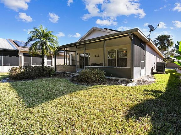 PRICE CHANGE! "AS IS" 00Welcome to your dream home! This exquisite 2-bedroom, 2-bath Cabernet model is nestled in a tranquil setting that overlooks lush conservation areas, providing a peaceful retreat from the hustle and bustle of everyday life. Quick move-in and fully furnished and turnkey ready, this home is perfect for those looking to move in without the hassle of additional setup. As you step inside, you’ll be greeted by a bright and airy open-concept layout that seamlessly connects the living, dining, and kitchen areas. The spacious living room invites relaxation and social gatherings, highlighted by large windows that flood the space with natural light and offer picturesque views of the surrounding greenery. The heart of the home is undoubtedly the large kitchen, designed for both functionality and style. It features a charming bay window that not only enhances the aesthetic but also provides a cozy nook for enjoying morning coffee. With ample counter space and storage, this kitchen is perfect for culinary enthusiasts and casual cooks alike. There’s also plenty of room for a dining table and chairs, making it an ideal space for family meals and entertaining guests. Retreat to the primary bedroom, which offers a serene escape with beautiful conservation views. This spacious sanctuary includes an en-suite bathroom that is both luxurious and practical, featuring a walk-in shower complete with a seat for comfort and convenience. Additionally, the generous walk-in closet ensures that you have all the storage space you need for your wardrobe and accessories. Step outside to the tiled lanai, a delightful space that is both functional and inviting. With a roof for shade and protection from the elements, it’s the perfect spot to unwind with a book, host a barbecue, or simply enjoy the soothing sounds of nature. The conservation views create a picturesque backdrop that enhances your outdoor experience, making it a true oasis.This home is not only aesthetically pleasing but also environmentally conscious, equipped with solar panels that significantly reduce power bills. BUYER MUST ASSUME 0000000000000000000000000000000000000000000000000$90 monthly Solar Panel Lease while saving on power bills. Enjoy the benefits of sustainable living while maintaining comfort and style. Garage includes a utility sink. All this in one of the top 55+ communities in America. Solivita offers residents access to state of the art amenities and work out facilities, dance and aerobics studios, 14 heated swimming pools, 2 heated spas, tennis courts, pickleball courts, softball, shuffleboard, bocce ball, billiards room, art gallery, 3 restaurants and 2 championship 18-hole golf courses. Don't miss out on the opportunity to have a first class lifestyle.