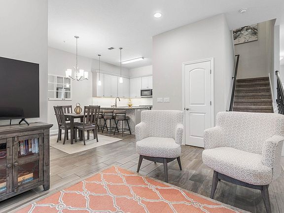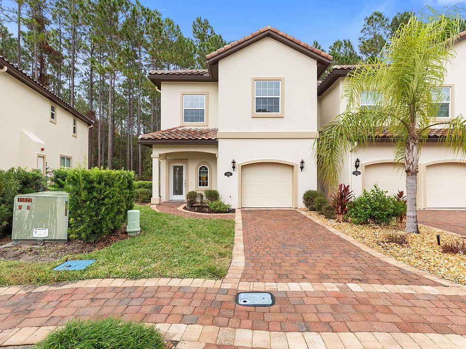 Beautiful Mediterranean Peaceful Oasis Awaits You – Condo in Grand Ravine with a quiet peaceful wooded preserve as your backyard. This home features 3 bedrooms 2 ½ baths. Step into a bright and light foyer, and walk the short hall into your living, dining, and kitchen areas all located on the first floor. The kitchen has an abundance of cabinets and counter space with a bar area for casual seating. The dining room is located between the kitchen and back porch which makes for a great entertainment area and a view to the preserve. Plank tile flooring throughout downstairs. Head upstairs to the master bedroom with an En-suite bathroom that runs the width of the condo. Features large tub and separate shower, dual sinks with ample storage cabinets. The master bedroom is a generous size and has plenty of room for a quaint sitting area. The two guest rooms are nicely sized. There is bonus storage under the stairs and a large laundry room.