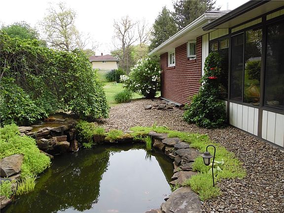 Brick ranch for the ease of one floor living. Updated kitchen, living/dining combo with stone gas log fireplace. Skylit 3 season room overlooks rear yard with koi pond & waterfalls. Master bedroom has shower bath & walk-in closet. First floor laundry. Loads of closet space & storage. All appliances included. Central Vacuum System. Unfinished basement has great potential and boasts a brick wood burning fireplace and new glass block windows. 2 car oversize attached garage plus 10 x 12 storage shed.