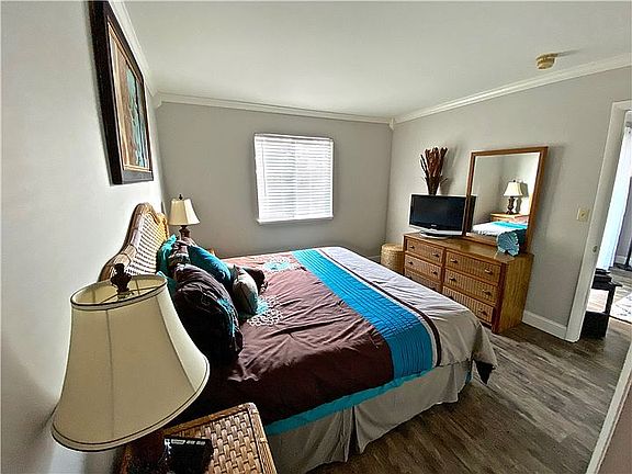This lovely top floor 2 bedroom, 2 full bath condo makes a great beach vacation spot or year-round living. The private, quiet balcony is overlooking the community pool and BBQ area. It provides a nice outdoor living space located just off from the living room. It has beautiful flooring, crown molding throughout, updated kitchen and bathrooms. In addition, it has a wet bar, well appointed kitchen, washer and dryer, so you have everything you need. all amenities are included, except Electricity which is billed at the end of each month. Owner has 10 of 5+ reviews. Long-term rental from October-May will have have additional discount.