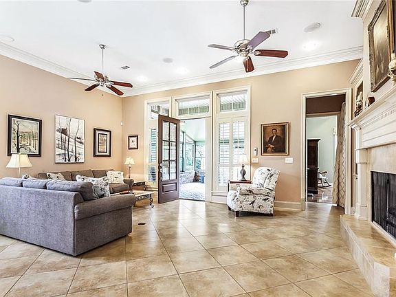 Exceptional home with all the extras. Beautifully landscaped home on extra large corner lot. Move in ready. 12' Ceilings throughout, open plan for entertaining with large sun room that views out door fire place and patio. Tile and wood floors throughout. Double oven with warming tray, wine cooler with built in wine rack, pot filler over 5 burner gas range. In-ground sprinkler system, exterior lighting, whole house generator and an electric lift in the garage. Whole house generator, 2.5 garage 10" ceilings.