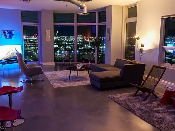 This 10th floor condo provides absolutely stunning...Views, Views and more VIEWS of the Las Vegas STRIP, mountains, and the Arts District. And if the sight seeing you'll get from inside the unit isn't enough, head on up to the rooftop deck and enjoy 360 degrees of the entire Vegas valley. In addition to tickling your visual senses over 20 stories in the sky, you can cool off in the roof top swimming pool or work up a sweat in the fitness center while watching the sunset or unwind and relax your muscles and mind in the hot tub. Stainless steel kitchen appliances and washer/dryer are included. Floors in the condo are polished concrete throughout. Community amenities also include a rooftop walking/jogging path, sky lounge with pool table, assigned garage parking, 24 hour receptionist, and security. You really will enjoy calling Newport Lofts home.