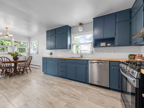 Small town living at its best. This thoughtful floor plan offers main floor living with a large living room, hardwood floors, large front windows to bring in the light. This home boasts a huge kitchen with plenty of room for dining table! Newer huge deck for entertaining and watching the kids play in the huge yard! Nice remodeling includes a custom back spash, updated appliances, counter tops, and flooring. Main floor bathroom is a charmer and done nicely with new surround and flooring, vanity, and paint, The three bedrooms are generous and all have beautiful hardwood floors. Primary has plenty of room for a king size bed! The lower level is just as large as the upstairs, its not currently finished but could be, just needs your touches. This home was freshly painted on the outside, siding is red cedar wood! Its a home that would be great for downsizers or those starting out! Large lot with mature trees and great curb appeal.