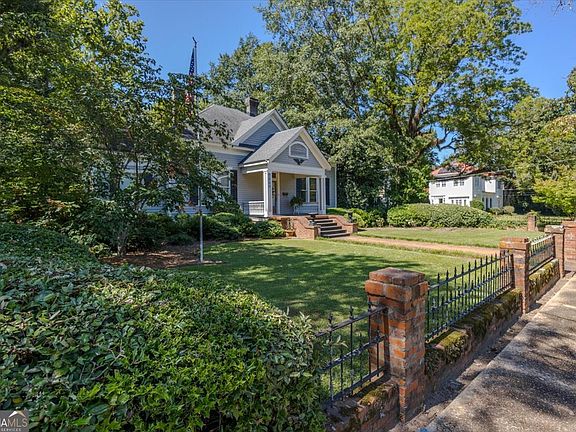 Downtown Delight! Step back in time with this charming historic home in the heart of Forsyth. Filled with character and timeless details, this residence offers three spacious bedrooms and two bathrooms. The inviting layout features a cozy den, a large formal dining room perfect for entertaining, and a wide center hallway accented with built-in bookcases. The kitchen area includes both a walk-in pantry and a butler's pantry, providing plenty of storage and functionality. A breakfast room with built-in cabinetry and stained-glass features adds warmth and charm. Enjoy outdoor living with a side and rear courtyard, a lovely gazebo, and beautifully designed landscaping. A classic red barn with a workshop area and an abundance of storage complements the property. Situated on a private wooded lot, this home is just a short stroll to Forsyth's vibrant downtown square-a true blend of history, style, and character.