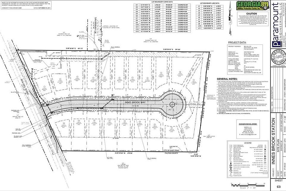 Exceptional shovel ready opportunity in East Point. The subject property is a 5-acre parcel of land, primed for community development. Land Disturbance Permit in hand for 20 single-family lots on slab. Cleared and graded in 2006, the landscape features only new growth trees on a level lot offering low land development costs. The absence of rent restrictions allows for a Build to Rent investment option. Proximity to a robust job market ensures steady rental demand. A community designed for success awaits, with an average rent of $2,500/month. The Build to Sell potential for a great return, with new construction homes' After Repair Value in the low $400,000s.