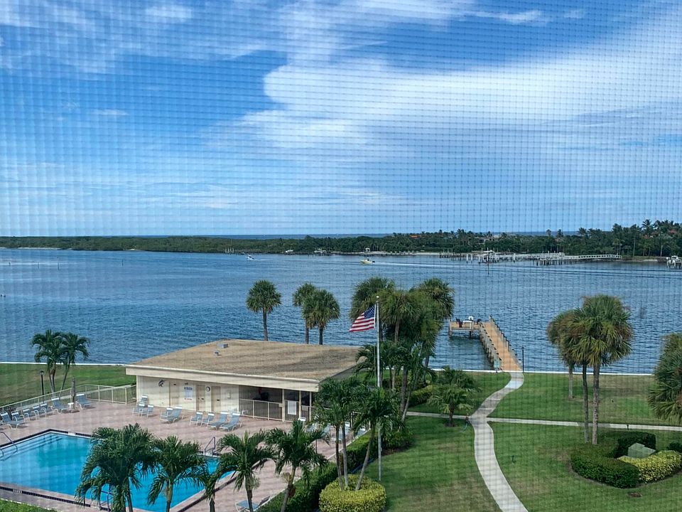 Wonderful Water-views of Intracoastal and Ocean from this penthouse condo !This is a 55 and older building that has much to offer.On-site manager,Clubhouse, pool, shuffleboard .Best of all it has a Day Dock and Kayak and Paddleboard secured storage ! Jupiter Points Boat Club is a few blocks North. Shopping Center is across the Street with shops, restaurants , grocery store and hardware store to name a few. Many Restaurants and shops in walking distance . This unit has newer Hurricane sliders on porch ! A/C new in August plus washer dryer ,Hurricane Sliders make for a Perfect enclosed porch to enjoy the view of the Waterway and Ocean . Also it helps with Insurance costs .Does need new flooring !