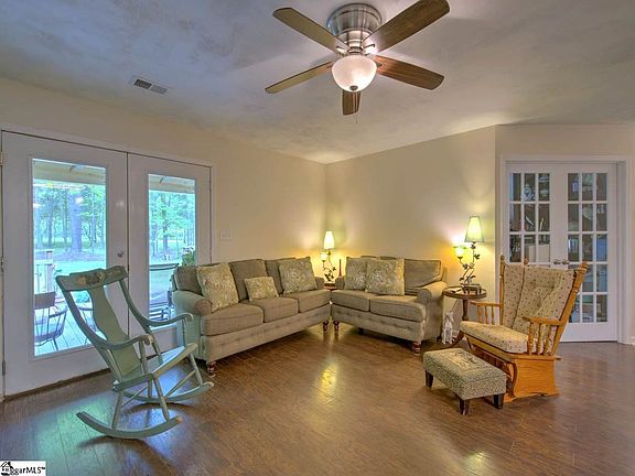 NEW PRICE $200,000 - Are you or someone you know looking for peace and quiet and country living? You'll find all that in this stick built home, located in Gray Court and just off Hwy 14. This home is so convenient to both Laurens and the Simpsonville/Greenville areas and just minutes to ZF Transmissions and the WalMart Distribution Center. Barksdale Farms is a large lot community consisting of a variety of homes. As you drive through the community you'll immediately take note that the homeowners have pride of ownership. 200 Irene Rd is a stick built home (approx. 2000 sq. ft) on almost 4 acres. Lots of trees provide privacy and a feeling of serenity. Out back you'll enjoy a private, fenced in area of approx. 1 acre. The remaining property is wooded and continues behind fenced in area. The covered back porch overlooks the grassy back yard that has just enough trees to provide wonderful shade. The majority of this almost 4 acre property is fully wooded. Inside the home you'll enjoy several flex spaces which include rooms currently being used as a more formal dining space and an office. Have kids and need a play room? Are you homeschooling? Need an area for a man cave? I think you'll find these flex rooms will fit any and all needed spaces for your family. Lots of thought and love went into the building of this home. Examples are the well thought out open, yet private, floorplan; concrete kitchen countertops; live edge kitchen bar top; hardwood/tile floors; and ceiling fans throughout. The bedrooms are set up as a split plan and provide nice privacy. The master suite has a full bath, walk in closet, and separate shower/jacuzzi tub. On the opposite side are the 2 additional bedrooms and bath. Located just outside the secondary bedrooms and steps from the garage is a nice sized walk in laundry room. When building this home, an elderly parent was kept in mind, so there is a ramp off the back of the home and large doorways and hallways for easy maneu