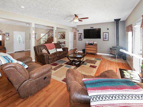 Beautiful custom built home on 7.5 acres! Home features 4 bedrooms, 4 baths, 3 levels, big covered wrap-around porch on front, open floor plan, hardwood floors through out main level, kitchen with granite, maplewood cabinets and large walk-in pantry as well as a main level master suite, whole house fan & vacuum. Lower rec room, bonus room & full bath. Upper level with 2 bedrooms, full bath & family room. 3 car drive through garage, workshop , underground utilities, double circle driveway and so much more! Enjoy 7.5 acres & wet weather creek & pretty mountain views! (Also available as just one parcel with 2.5 acres for $319,900 MLS 60164670)