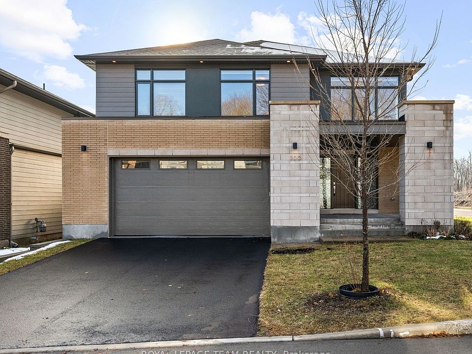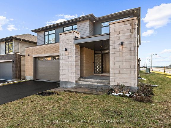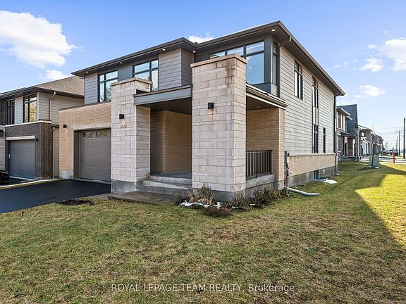 200 Ketchikan Cres. Desirable Kanata Location facing wooded area across the street. The 'Millar' model by Uniform homes is 3157 square feet as per builder's plans. Exceptional custom home located on a premium corner lot. Modified and extended kitchen with high end Bosch appliances and large quartz island. 9 foot ceiling and 2 storey ceilings on the main level with engineered hardwood flooring on the main level and upper hallway. Added windows plus a linear gas fireplace in the living room. Hardwood staircase to the 2nd level. Open staircase to the lower level. (unfinished, but has 9 foot ceiling, enlarged window and rough-in for bathroom) Main floor study or guest room for a senior with a 3 piece bathroom and walk-in shower. Convenient 2nd floor laundry room. Primary bedroom offers a raised ceiling, walk-in closet plus a double closet. Luxury ensuite with a free standing soaker tub, walk-in glass & tile shower and large vanity with quartz counter and 2 sinks. 3 piece main bathroom with oversized shower. Bedroom 3 offers a full ensuite bathroom. Exterior pot lighting controlled by phone app. Gas connection for BBQ. Oversized garage with EV charger in place. Home is still under Tarion warranty. Located in catchment area for Top ranking schools. Some photos have been virtually staged.