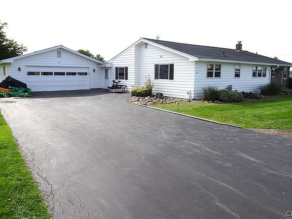 Spacious RANCH in a quiet, beautiful neighborhood with STUNNING sunset views of Onondaga Lake from the huge living room windows. Also enjoy your very own view of the fireworks from the fairgrounds and the ballpark without the traffic! This ranch is close to RT. 81 access, downtown, the mall and other conveniences. In addition to the large living room with incredible views is a separate family room for relaxing with a gas fireplace. Beautiful hardwoods are exposed in the hallway and bedrooms. Hardwoods are under the carpet in the dining and living room which have been protected with a very plush carpet, just cleaned, which could be removed. The half bath has been plumbed for a shower. The smaller bedroom could be an office or easily converted into a laundry room and/or expand the half bath to a full. Tons of storage in the beautiful kitchen cabinetry. Enter the private fenced in yard from the back enclosed porch or the dining room. There is a large patio under an overhang to enjoy sitting outside. Workshop space in basement with lots of built in shelving. Basement has separate room which could be a bathroom. Don’t miss the rare opportunity in this neighborhood to own this home!!