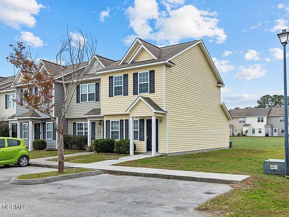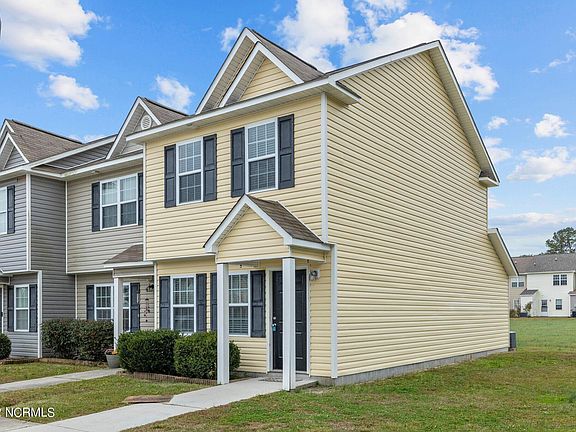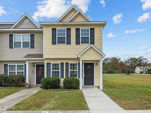 RELAXED, EASY LIVING. If you value location, convenience and quality, then you'll fall for this 2-bedroom, 2-1/2 bath town house in Bear Creek. The generous downstairs area accommodates the kitchen, dining & family room. The home features a living room with gleaming laminate flooring, a kitchen with ample cabinetry, a cleverly concealed laundry, downstairs guest bath, and a wonderful garden patio. The upper level houses the two generous bedrooms, each with full baths. There is plenty of parking for residents and guests. It's close to NC Wildlife Boat ramp at Willis Landing, and minutes away from back gate of Camp Lejeune, schools, shopping and other coastal amenities. Prompt viewing is strongly recommended. Offered at 147,000.
