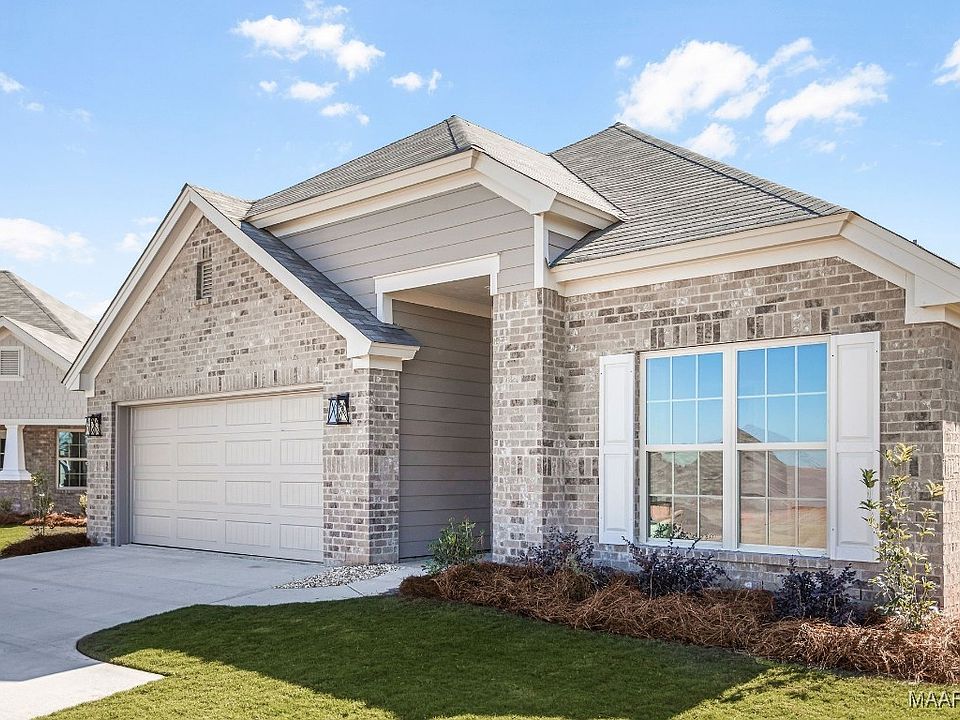 Spacious 3 bedroom 2 bath home with an open, inviting floor plan. The Courtland floor plan has a super-sized great room. Stainless steel appliances make cooking fun & cleanup less of a chore and life is good with an oversized island with an upgraded leathered marble in the kitchen. Works well for casual dining or entertaining with the spacious great room. Lovely kitchen with lots of counterspace and cabinetry. Relax in style in the primary bath with double vanities, a separate tiled shower, and a closed water closet. Just two more homes in StoneyBrooke so don't miss out! StoneyBrooke is considered East Montgomery’s perfectly priced neighborhood. Conveniently located just off I-85 at Mitylene Exit 11 in east Montgomery this community is designed around a sparkling lake, park, playground and pavilions, all of which are laced with shaded walking and exercise trails. StoneyBrooke's beautiful community says leisure living at its best.