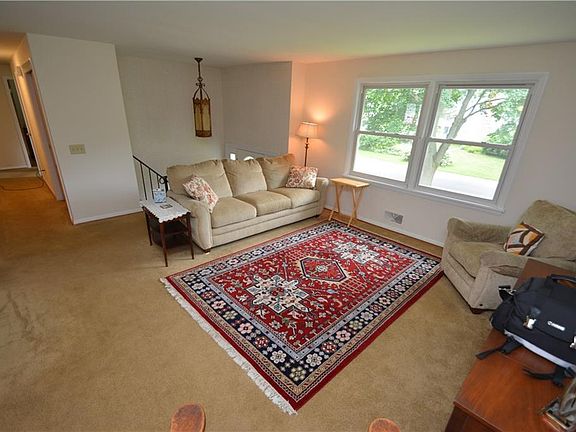 Spacious 4 bedroom raised ranch on mature lot! 1st floor bedroom and full bath! Upstairs has 3 bedrooms and a full bath! Dining and living rooms with hardwood floors under the carpet. Lower level family room with wood stone. Updated windows. Whole house generator! Remodeled bath on 2nd floor with corian tip, tile floor and shower surround. One car garage under house and 2 car detached garage! Solar panels on side of the house for additional heat!