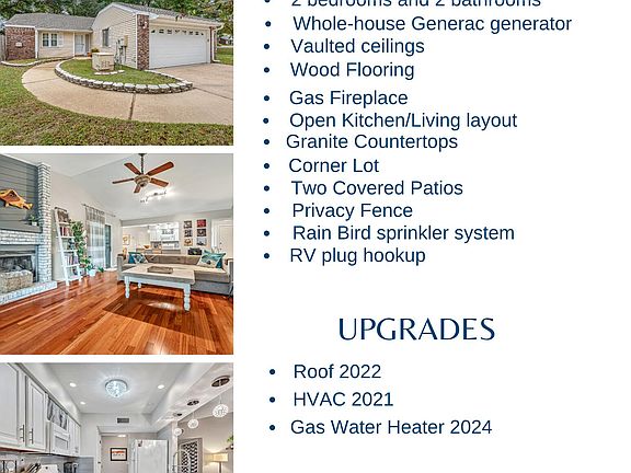 Whole-house Generac generator, 2022 roof, 2021 HVAC system, and 2024 water heater all the big updates are done!Plus, the seller is including an Achosa Home Warranty for added peace of mind.This beautifully maintained home sits on a desirable corner lot, centrally located by local parks, schools, shopping, dining and just minutes from Northwest Florida State College, nearby military bases, and a quick 30-minute drive to the Emerald Coast beaches. Inside, you'll find vaulted ceilings, rich wood flooring, and a cozy gas fireplace that make the living area feel warm and inviting. The kitchen features granite countertops, white shaker cabinets, and an open view into the living room perfect for staying connected while entertaining or relaxing. Step outside and enjoy not one, but two covered patios, ideal for morning coffee or evening gatherings. The privacy fence, Rain Bird sprinkler system, RV plug hookup, and two-car garage add convenience and functionality to everyday living.