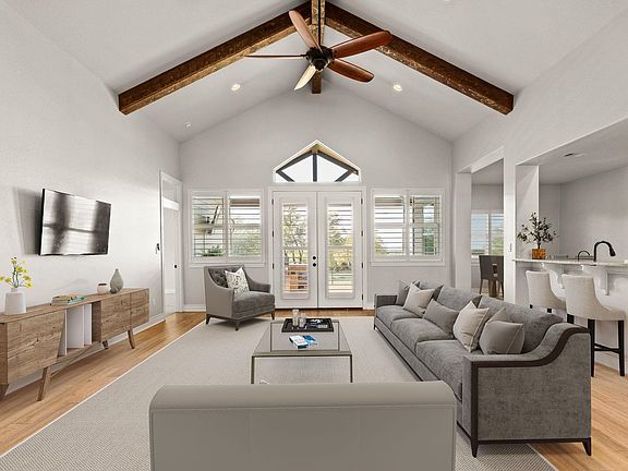 Discover the perfect blend of rustic charm and modern luxury on this stunning 5-acre estate in the heart of the Texas Hill Country. This meticulously maintained 4-bedroom, 3-bath home features a spacious office, open floor plan, and soaring vaulted ceilings that create a light, airy ambiance throughout. Gather around the impressive wood-burning stone fireplace or entertain in the gourmet kitchen, complete with knotty pine cabinetry, a walk-in pantry, and top-of-the-line finishes. The primary suite offers a spa-like retreat with a double vanity, oversized shower, and soaking tub for ultimate relaxation. Enjoy panoramic Hill Country views from your backyard, where an outdoor kitchen with bull appliances invites year-round grilling and gatherings. The property is fully fenced and secured by a grand pipe entrance, providing both privacy and peace of mind. Additional features include a 30’x30’ shop, a 48’x50’ climate-controlled barn facility, and a 50’x15’ lean-to—perfect for hobbies, storage, or livestock. This exceptional property is more than just a home—it’s a lifestyle. At this price it won't last long, walking into equity.