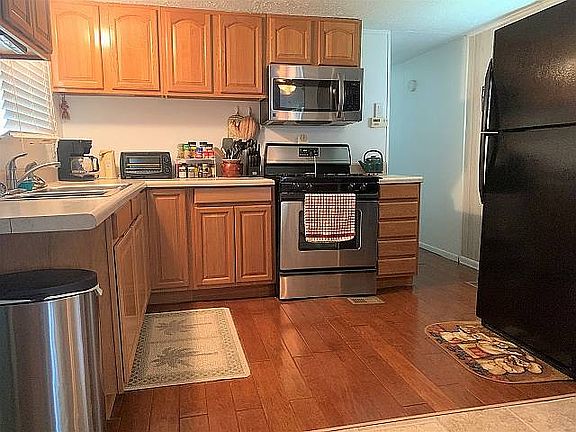 Beautifully renovated home has so much charm! The Florida room has been remodeled into a beautiful living space with central air vents. A second bedroom has also been assed complete with a murphey bed and access to the newly screen lanai. The kitchen has gorgeous oak cabinets and rich vinyl flooring. The bathroom has a very sleek double vanity, walk in shower, and a high ride commode. Inside laundry room includes a stacked washer and dryer. Bryant HVAC was installed in 2007. Low lot rent and pet friendly community on Lake Griffin. You don't want to miss this opportunity! LB10621