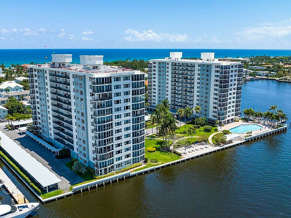 LOCATION: 200 Macfarlane Drive, Delray Beach, Florida. On the Intracoastal Waterway just three blocks from the ocean and Delray Beach's vibrant Atlantic Avenue, the full-service Seagate Towers comprises two 12-floor towers with only three units per floor. Extensive renovations include new lobbies, social rooms and roofs as well as the recently completed $3.4-million concrete restoration project. PROPERTY: Offering coastal living at its finest, residents enjoy leisure time around the large community heated pool, grilling area, picnic area and fitness center. Available on a first-come first-serve basis, Seagate Towers' recently updated full-service dockage in a no-wake zone can accommodate boats up to 52 feet.For continued remarks please see ''More'' RESIDENCE: Watch boats go by from this chic 1,970 +/- total-square foot, two-bedroom corner condominium residence, where from sunrise to sunset, residents also enjoy beautiful panoramas of the ocean, Intracoastal and city views. Beautifully renovated and meticulously reimagined with an easy, flowing, open floorplan that invites entertaining, details throughout include honey-toned bamboo flooring, custom cabinetry, and window walls of impact glass. The living room accesses the private enclosed patio, and a low breakfast bar separates the kitchen from the dining room for easy service. Topped by a tray ceiling, the kitchen is fitted with white Shaker-style cabinetry providing copious storage, quartz counters, and stainless appliances. The split-bedroom plan places the primary bedroom suite separate from the guest bedroom suite. The primary bedroom also opens to the Intracoastal-view glass-enclosed patio, and the plush suite comprises a walk-in closet, linen closet and a quartz-embellished bathroom. The guest suite features custom built-in cabinetry and a cedar-lined closet. This well-located exceptional residence comes with a utility room and covered parking for one car.