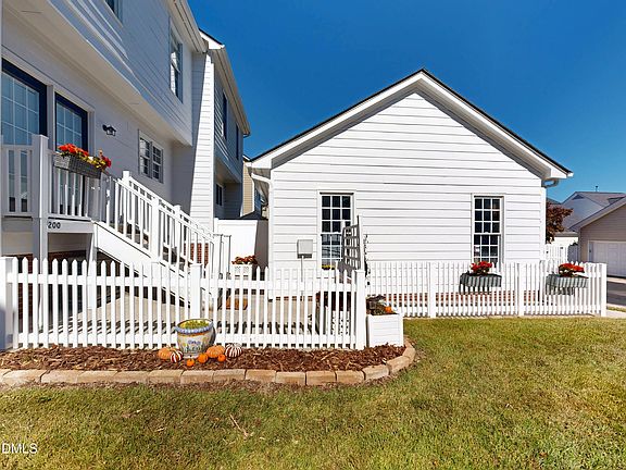Bright and inviting end-unit townhome with 2 bedrooms, 2.5 baths, and a detached garage in one of Cary's favorite communities. Relax on the covered front porch or enjoy the private back patio with a small deck. Inside, the home shines with fresh new paint throughout and brand new carpet, alongside thoughtful updates, including Kohler comfort-height toilets, stainless steel appliances, upgraded plumbing fixtures, garbage disposal, new ceiling fans and LED light fixtures, and a charming insulated leaded-glass front door. Major systems have been modernized for peace of mind: new roof (2022), high-efficiency HVAC split system (2023) with thermostats on each floor, and a commercial-grade compressor, keeping energy costs low. Front porch replaced and reinforced, graded for proper drainage. Carpenter Village is surrounded by walking trails, a lake, community pool, clubhouse, tennis courts. There are recreational and seasonal sponsored activities such as summer concert series, food trucks and holidays events. In addition, shopping and dining galore just 2-5 minutes away — Wegmans, CVS, major highways, and some of the most highly rated schools in Wake County. A comfortable, energy-efficient, move-in-ready home in a coveted neighborhood that has it all. Neighborhood photos coming soon!