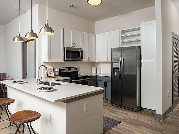 - Exterior features: Custom Lighting Fixtures, Custom Two-Toned Cabinetry, Fiber Ready, Lofty 10' Ceilings, Quartz Counter Tops, Stainless Steel Appliances, Subway Tile Backsplash, Subway Tile Kitchen Backsplash, TV Lounge