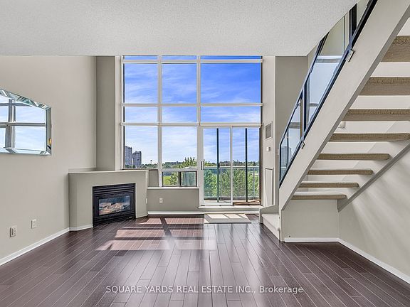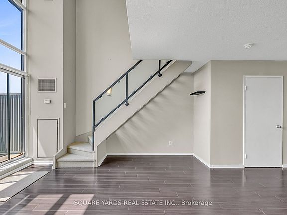 Welcome to Mystic Pointe Lofts, a vibrant and sought-after community in the heart of Mimico a lakeside neighbourhood known for its urban convenience and small-town charm. This stunning 2-storey loft offers soaring 17-foot ceilings, a spacious 1-bedroom layout, and 1.5 bathrooms. The open-concept main floor includes a stylish powder room and a modern kitchen with stainless steel appliances and a breakfast counter, making it perfect for casual meals or entertaining. Upstairs, the primary bedroom features a 4-piece ensuite complete with a glass shower and a jacuzzi tub the perfect spot to unwind after a long day. Enjoy the convenience of having ensuite laundry on the upper level. Step outside to the balcony and take in bright, south-facing views overlooking Grand Avenue Park and partial views of Lake Ontario. Just steps to the lakefront, groceries, shops, cafes, and transit with quick access to the Gardiner Expressway and Lakeshore Blvd W this home offers the perfect balance of lifestyle and location. Pictures were taken when it was vacant.