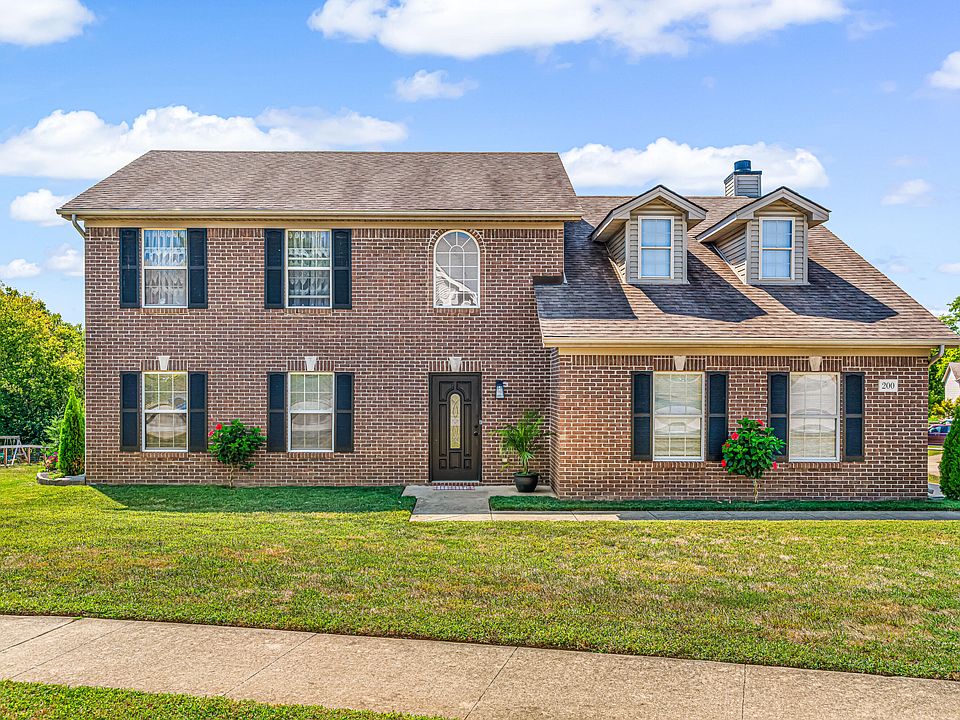 Welcome home where peaceful cul-de-sac living meets the convenience of nearby development. Tucked away from traffic, yet just minutes from new shops, dining, and entertainment, this move-in-ready beauty offers the best of both worlds. Step inside to find laminate flooring flowing throughout the spacious first floor. The layout includes a large great room, dining area, and an expansive living room with electric fireplace that seamlessly connects to the kitchen. The kitchen features granite countertops, a stylish tile backsplash, and a bar area perfect for entertaining highlighted by modern lighting that sets the mood. A beautifully designed half bath with tile flooring, a quartz vanity, and an accent wall serves the main living spaces. Upstairs, you'll find four generously sized bedrooms, each with ample closet space. A versatile flex room—ideal for a home office, playroom, or guest space which shares a full bathroom complete with tile floors, a tile-surround tub, a floating vanity, and a tasteful accent wall. The spacious primary suite offers vaulted ceilings, abundant natural light, and a calm atmosphere. Here the private bath features tile flooring, dual lighted mirrors, and a custom walk-in tile shower. Outside, enjoy a covered deck that's perfect for relaxing or grilling with friends. The attached garage is sealed and includes built-in cabinets for optimal storage. Don't miss your chance to experience the perfect blend of peace and proximity to city life, schedule your tour today!