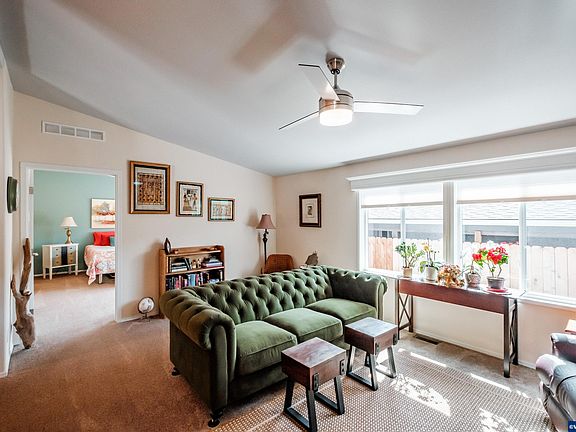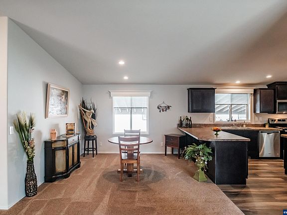 Better than new! Enjoy the long summer days & nights in your beautiful backyard with lush landscaping, patio & gazebo included. Fully fenced & private. Home features an abundance of storage with spacious island kitchen & pantry cabinetry. Split floorplan - primary ensuite has an amazing attached bathroom with soaking tub. Vaulted ceilings, central A/C, storage shed & carport. Insulated blinds on west side. All landscaping & fencing is done correctly & built well! Wall colors are more subdued than in photos.