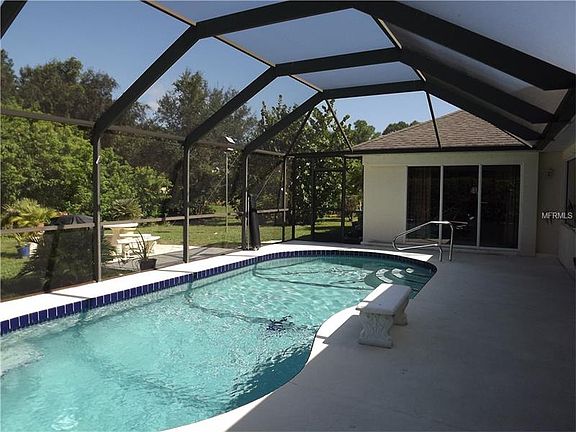 Welcome to lovely Wht Marsh in Rotonda West, Florida. Presenting this Schroder Custom built 3/Bed, 2 1/2 bath, 2 car garage, 2100 sq ft. pool home. Nothing cookie cutter about this one! Entry way immediately allows wide open views of pool, lanai and backyard. 18-in ceramic tile throughout living room, great room, dining room and kitchen. Kitchen features handsome granite counter tops, double tiered breakfast bar, tons of cabinets, built-in desk. Beautiful Aquarium window in eat-in area of kitchen provides so much light and sparkling pool view. Great room has double tray ceilings and easy access thru sliders to lanai/pool. Separate dining room for entertaining is so light and bright. Master bedroom also has tray ceilings, his and hers walk-in closets and sliding glass doors to lanai/pool. Master bath is user friendly w/double sinks, walk-in ceramic shower w/bench and garden tub. Really roomy! Split floor plan makes having company a breeze. 3rd bedroom currently being used as an office. Lanai area has large area both under cover(23x9) and open to the sunshine. Heated Pool. Pool area has a half-bath that makes life easier. This is a home planned and built for the Florida lifestyle. Complete the presentation w/ the elegant and functional circular driveway. Beaches, shopping, restaurants are a short drive away. PS if you enjoy golfing why not check out Rotonda Golf and Country Club Long Marsh-200 Medalist backs up to it and you can drive your golf cart to it!!