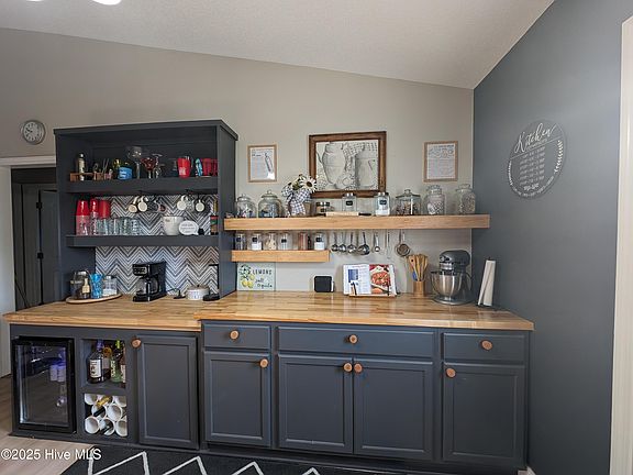 As you enter, you'll find a bright and airy living room perfect for relaxation or entertaining guests. The modern kitchen is well-organized and thoughtfully laid out, designed to enhance functionality and efficiency. It boasts recent updates, including additional cabinets for ample storage, a large pantry to keep everything organized, and a dedicated baking station for all your culinary creations. A beverage station with its own mini fridge and bottled water dispenser is perfectly positioned to keep refreshments at hand. Additionally, a built-in table with comfortable seating provides a cozy spot for meals and casual gatherings, making it the heart of the home.